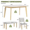 This 6-piece rustic farmhouse dining set combines timeless charm, functionality, and durability, featuring a natural wood wash rectangular table, 4 tufted upholstered chairs, and a versatile bench¡ªseating 4-6 people perfectly. The table¡¯s ash wood finish with natural wood grain exudes vintage warmth, while the 0.7" MDF top and LVL rubberwood legs ensure sturdiness for daily use. Anti-scratch floor feet on all legs protect your flooring and enhance stability. The chairs and bench offer exceptional comfort with ergonomic high-density foam padding, and the chairs¡¯ tufted button backrests add a touch of sophistication that complements rustic, classic, or modern decor. Beyond dining, the 39.75" bench doubles as a bedside seat or entryway shoe-changing bench, adding versatility to residential or commercial spaces (restaurants, cafeterias, event halls). Available in natural wood wash or grey, the set ships with detailed instructions and all necessary hardware for easy assembly. Whether for family dinners, casual gatherings, or commercial use, this set balances style, comfort, and practicality to elevate any dining space.