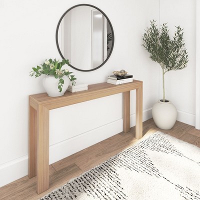 Gulches 60 Inch Acacia Veneer Console Table 4 Spacious Drawers X Leg Open Bottom Storage Farmhouse Sofa Table For Living Room Gray
