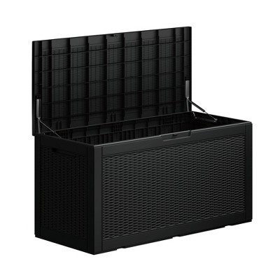 Gulches 60GAL 227L Outdoor Storage Deck Box Black Rattan Grain Effect Lockable Weatherproof Resin for Patio Garden Backyard