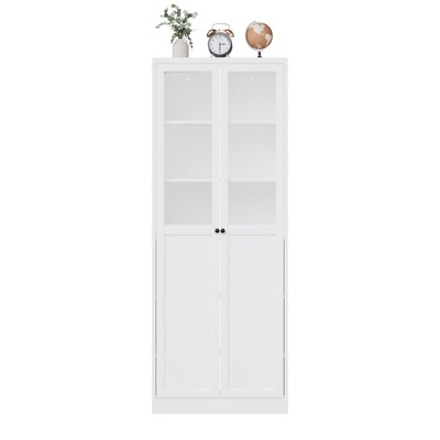 Gulches 83.4" Tall 5-Tier Wood Bookshelf - LED Light Strip, 2 Adjustable Shelves & Cable Hole, Free Standing Storage for CDs/Books White