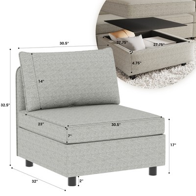 Armless Seat for Modular Sectional Sofa, Convertible Sofa Seat With Storage, Sleeper Sectional Sofa Set, Fabric Flexible Modular Combinations for Living Room(2PCS)