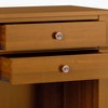 Elevate your space with the Gulches Carlton Bedside Table, handcrafted from premium solid wood for lasting quality. Each piece is hand-finished with a protective NC lacquer to enhance natural grain and uniqueness. Featuring 2 spacious drawers with smooth metal glides and an open bottom storage area, it offers ample space for essentials. Its transitional design shines with a double molded top, tapered legs, flat panel drawer fronts, and antique bronze rounded handles. Multipurpose by nature, it works seamlessly as a bedside table, end table, or side table in living rooms, family rooms, or condos. Assembly is required.