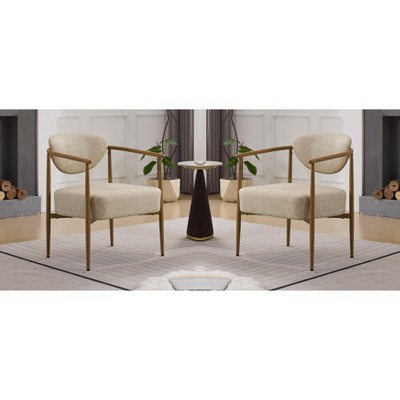 Gulches Beige PU Leather Accent Chair, Soft Foam Seat & Back with Wood-Grain Water Transfer Metal Frame, Multi-Use