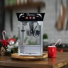 This 850W popcorn machine features a 12 ounce stainless steel kettle producing popcorn ideal for home theaters and events It includes a built in warming deck and a reject kernel tray for easy cleanup The tempered glass provides durability and a clear view of the popping process