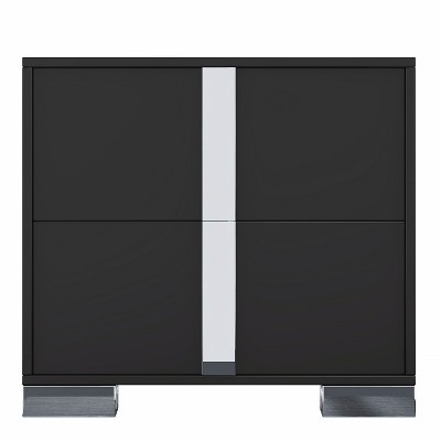 Gulches Black High Gloss Mirrored Nightstand with 2 Drawers - Metal Handles & Feet, Sturdy MDF Bedside/End Table for Bedroom/Living Room