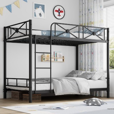 Gulches Black Metal Frame Queen Twin Twin Platform Bed with Detachable Design Safety Guardrails Ladder Storage Shelf Noise Reduction