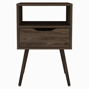 Gulches Dark Walnut Nightstand - Open Shelf & Drawer Bedside Table