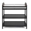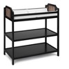 Discover the Elegant Black & Brownstone Changing Table, designed for both safety and style in your nursery. This changing table features safety rails on all four sides, providing a secure space for diaper changes. With two open storage shelves, it offers convenient access to diapers and baby essentials. Once your little one outgrows the changing table, it effortlessly transitions into a stylish shelf for toys and books, or even a chic bar cart for your entertaining needs. Crafted with non-toxic finishes, this piece ensures a safe environment for your baby.