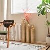 Transform your living space with the Elegant Gold Distressed Metal Vases Set, a stunning trio designed to elevate your home decor. Each vase features a unique growing vine pattern and a polished gold finish that adds a touch of glamour and sophistication. Crafted from durable metal, these vases are not only visually striking but also built to last. Ranging in height from 25" to 34", they make a bold statement as centerpieces on tables, mantels, or shelves. Perfect for showcasing fresh flowers or as standalone decorative pieces, this set brings a luxurious flair to any room.