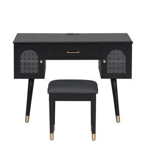 Gulches Elegant Vanity Makeup Table & Chair Set, Modern Dressing Table with Organizer, Writing Desk, Charging Port, Black