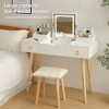 Elevate your daily routine with the Elegant Vanity Desk Set, designed to bring both style and functionality to your bedroom or bathroom. This sophisticated set features a large mirror with adjustable lighting modes, allowing you to customize brightness for any occasion. The flip-top design reveals a spacious storage area, complemented by a side drawer and container for organizing cosmetics, jewelry, and more. The sturdy desk and cushioned bench ensure stability and comfort, making this set a perfect gift for loved ones seeking elegance and practicality in their beauty space.