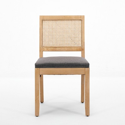 Gulches Farmhouse Rattan Dining Chairs Set of 2, Gray Mid-Century Modern Cane Upholstered Side Chairs with Natural Hardwood Frame