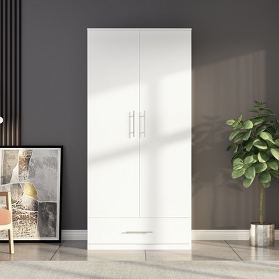 Gulches Freestanding Closet System, Stand-Alone Wardrobe with 6 open Shelves,74.8'' Heigh Closetwith 1 Wood Drawers, Wood Walk-in Closet with 2 Hanging Rod, White