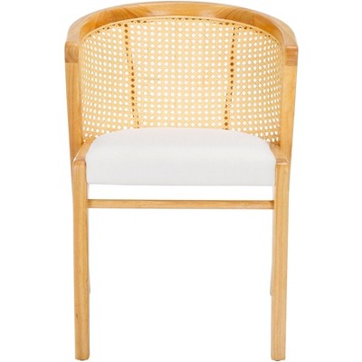 Gulches French Style Solid Wood Dining Chairs Set of 2, Cream Elegant Upholstered Chairs with Linen Fabric Seat & Rattan Mesh Backrest - 1 of 4