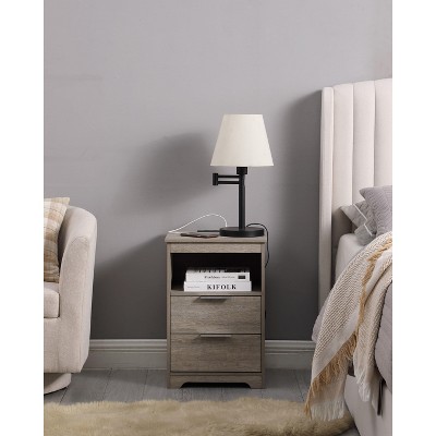 Gulches Gray 2 Drawers 15 in W Nightstand with Charging Station Open Shelf Wooden Side Table