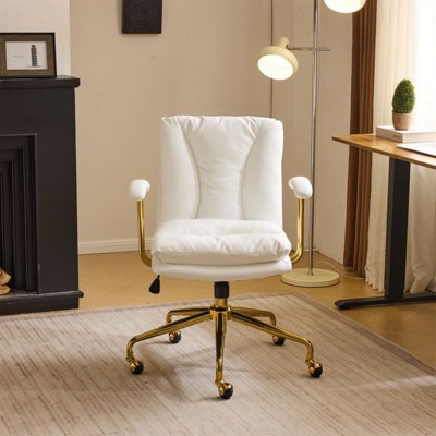 Gulches Gray Faux Alpaca Hair Office Chair - Adjustable Swivel Vanity Chair with Golden Base, 40¡ã Recline, Wider Seat (320mm Large Base)