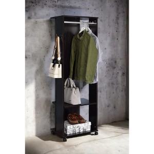 - Featuring two open compartments and a hanging rod, it provides generous storage space for coats, hats, and accessories, while the double-pronged hook offers additional hanging options for convenience.