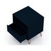 Gulches midnight blue 1-drawer nightstand features a mid-century modern design that elevates any bedroom or living room. It includes a spacious drawer and open shelf (each 11Lb capacity) for organized storage. Made with durable MDF and sturdy metal splayed legs, it¡¯s both stylish and durable. Choose your preferred handle design and assemble easily with all included hardware¡ªperfect for storing or displaying bedside items.