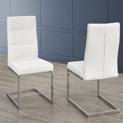 Gulches Modern Minimalist Dining Chairs Set of 2 White PU Leather Metal Legs Ergonomic for Restaurant Kitchen Office