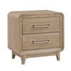 This 2-drawer nightstand (28"W x 17"D x 27"H) balances functionality and style, with a natural finish that brings organic warmth to your bedroom. Its two large drawers--fitted with ball bearing glides--provide reliable storage for books, electronics, or linens, while antique nickel pulls and smooth corners elevate its design. With simple assembly required, it's an accessible, practical addition that blends seamlessly with diverse decor styles. Includes one nightstand only.