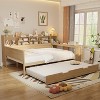 Gulches Natural MDF Plywood Pine Frame Full Platform Bed with Twin Trundle Study Desk Storage Shelves