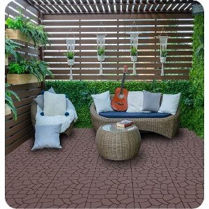 Transform your outdoor and indoor spaces with Gulches New Stone Texture 12" Patio Deck Tiles in rich red-brown! This 44-piece DIY set features a stunning stone-like design that adds elegance to any area. The interlocking tiles are easy to install and built to withstand the elements, making them perfect for patios, balconies, or garden paths. Elevate your decor with style and durability!