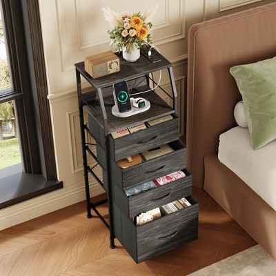 Gulches Open Space & 2-Drawer Nightstand with Charging Station, Farmhouse End Table with USB Ports & Outlets, Fluted Design