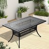 - Elegant Design: The table showcases intricate carved patterns that bring a sophisticated touch to any outdoor setting, enhancing its visual appeal.