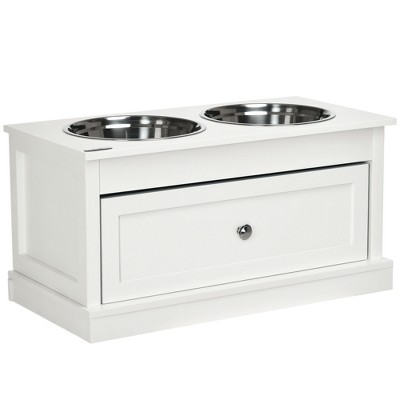 Gulches PawHut 23" Modern Decorative Dog Bone Wooden Heavy Duty Pet Food Bowl Elevated Feeding Station - White