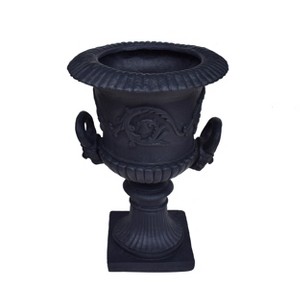 - ELEGANT STYLE - Black lightweight concrete gives this planter a high-end, faux-stone appearance. This piece boasts a Roman design with botanical accents and a square base.