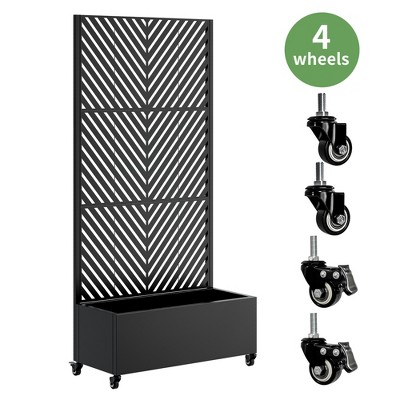 This round metal planter box with trellis and 4 wheels offers 3-in-1 functionality, serving as an elevated garden bed, sturdy trellis for climbing plants (vines, vegetables, flowers), and 73¡± high privacy screen. Crafted from premium galvanized metal with a 1.2¡± thick flowerpot, it¡¯s rust-resistant, deformation-proof, and built to withstand harsh outdoor conditions for long-lasting use. The 14¡± deep planting zone with drainage holes prevents waterlogging, supports robust root growth, and maintains optimal soil moisture with minimal upkeep. It effectively conceals unsightly items like AC units or trash cans while creating sophisticated partitions for patios or decks, blending functionality with natural charm. Equipped with 4 wheels for easy mobility, it allows effortless rearrangement of your outdoor space. With pre-drilled holes and an intuitive guide, assembly is quick and hassle-free¡ªno special tools required.