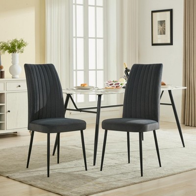 Gulches Set of 2 Minimalist Dark Grey Velvet Dining Chairs, Adjustable Foot Studs & Black Powder-Coated Iron Frame, 300 Lbs Capacity