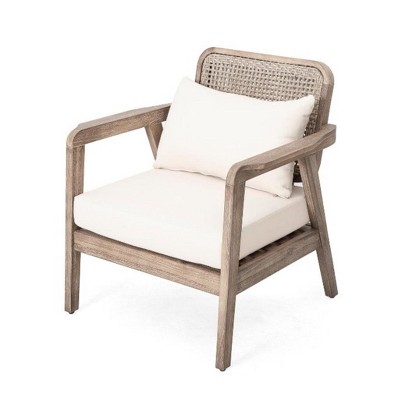Gulches (SET OF 2) Outdoor Acacia Wood Patio Club Chair, Patio Furniture,Waterproof Thick Cushion Deep Seating,Light Brown finish, Cream cushion