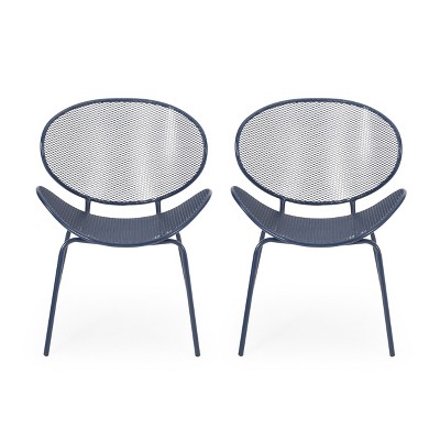 Gulches Set of 2 Outdoor Green Curvaceous Shell Chairs Powder Coated Iron Frame Modern Mesh Seating Retro Three Legged