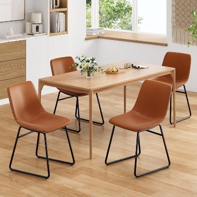 Gulches Set of 4 Modern Brown PU Leather Dining Chairs Carbon Steel Legs for Home Restaurant Conference Room Office Cafe
