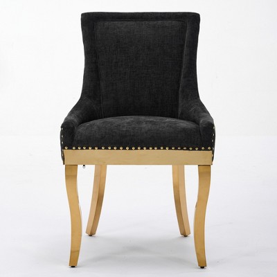 This set of 6 modern upholstered dining chairs combines timeless elegance with practical comfort, making them a versatile addition to any home. Crafted with high-quality PU leather¡ªsoft to the touch, durable, and easy to clean¡ªpaired with high-density rebound sponge in the seat and backrest, they deliver breathability and long-lasting comfort for extended sittings. The ergonomic elongated backrest conforms to your waistline, providing reliable support and relieving fatigue, while the sleek gold-plated metal legs elevate your home decor with modern charm. Equipped with anti-slip feet, these chairs protect your floors from scratches and ensure stable use. With black and white color options, they easily mix and match with various interior styles, seamlessly fitting into kitchens, living rooms, bedrooms, or dining rooms. Assembly is hassle-free with included instructions, taking most users just 15-20 minutes to complete, offering both style and convenience for your living space.