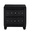 Gulches Sophia nightstand combines luxury and functionality with sumptuous black velvet upholstery and eye-catching crystal tufted detailing. Complemented by crystal-accented pulls, it exudes glamour while offering practical storage via 2 spacious drawers. Built with a solid wood frame, the drawers feature English dovetail joints and full-extension metal ball-bearing glides for smooth operation. Measuring 16"D x 26"W x 27.5"H, it fits seamlessly in any bedroom and requires no assembly¡ªenjoy this high-end bedside piece instantly.