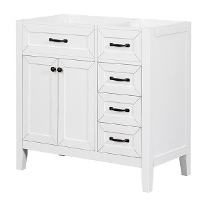 Gulches Stylish 36" Bathroom Vanity Cabinet Base Only, White Solid Wood Frame, MDF Board, Ample Storage