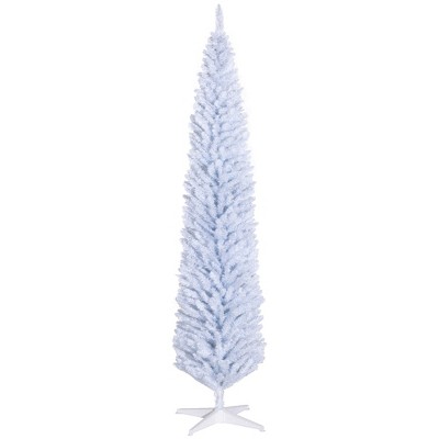 Gulches Unlit Slim Douglas Fir Pencil Christmas Tree - 6ft, White, 618 Tips, Halloween Tree, Flame-Retardant, Steel Base