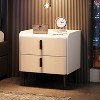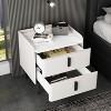 Introducing the Gulches white nightstand a modern functional piece for bedrooms and living rooms crafted from high quality PU MDF and metal it blends durability with elegant style the marble pattern tabletop exudes minimalist refinement adding sophistication to any space and its three sided raised guard keeps items like lamps or glasses secure preventing falls the nightstand has two spacious drawers each holding up to 33 lbs perfect for storing books chargers jewelry and small essentials to keep rooms neat organized its four supporting legs have rounded bases that add sleek style while protecting floors from scratches the high quality PU material feels soft refined and is easy to clean just a gentle wipe removes dust and maintains a fresh look the tabletop supports up to 200 lbs securely holding heavier items without wobbling measuring 19 inches in length 15 inches in width and 20 inches in height it fits beside beds or sofas without taking excess space while offering ample storage and display area the package includes clear assembly instructions and all necessary tools making setup quick simple even for those new to DIY whether as a bedroom bedside table for nighttime essentials or a living room end table for drinks remotes or decor this nightstand is a perfect mix of style and practicality