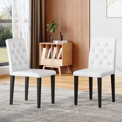 Gulches White Black PU Leather Ergonomic Buckle Backrest Adjustable Anti Slip Feet Dining Chair Set of 4