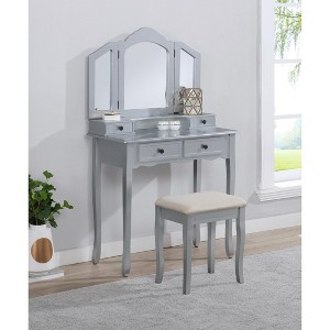 Gulches Wooden Vanity Make Up Table and Stool Set, Silver