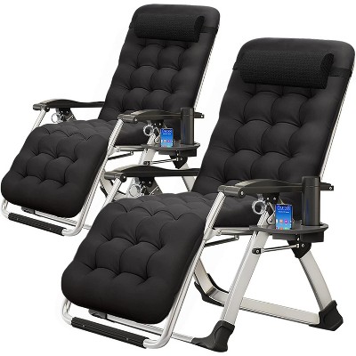 - Folding Table & Trays: Our set of 2 zero-gravity chairs is equipped with side trays and a folding table offering several outdoor surfaces, with six cupholders, a spot for food, your phone, tablet, magazine, and much more.