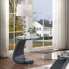 An arched, cantilever style base lends a modern touch to this elegant end table, perfect for adding a resting place for drinks and reading material next to a side chair or flanking each end of a sofa. This end table features a striking abstract shaped base with a lustrous high-gloss finish, making it easy to maintain and offering a handsome look for a transitional style home. In addition, this end table offers a tempered glass tabletop with a classic beveled edge that lends a softness to the piece.
