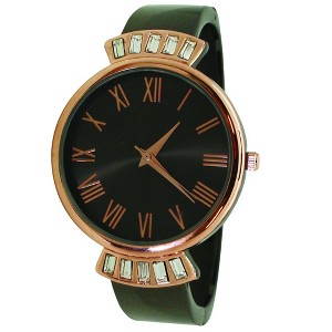Product Name: Gunmetal Rose Gold Olivia Pratt Elegant Emerald Rhinestone Solid Metal Bangle Watch