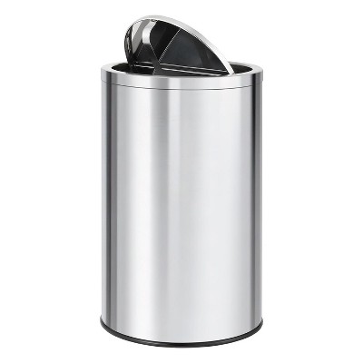 Heavy-Duty Design: Crafted from premium stainless steel, this 13-gallon cylindrical garbage can is designed for commercial and outdoor use, featuring a heavy-duty construction and a rust-proof brushed finish for durability and an attractive appearance.
