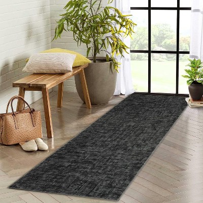 GustoWave 2' x 6' Modern Floral Machine Washable Indoor Waterproof Area Rug for Bedroom, Living Room, Black