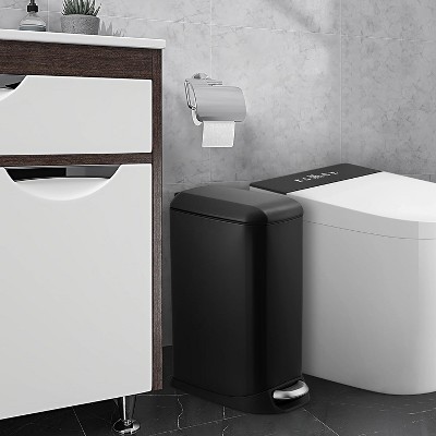 GustoWave Stainless Steel Double Trash Can,Large Dual Trash and Recycle Bin Combo, Step-on Kitchen Metal Garbage Cans,Matte Black