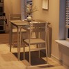 This compact 3-piece dining set, measuring just 29.1 x 29.1 x 30 inches, is ideal for small kitchens, apartments, or breakfast nooks, maximizing limited space without sacrificing comfort or function. Built from durable, heavy-duty materials, it features a sturdy table and reinforced chairs for lasting stability and support. Its sleek, minimalist design fits effortlessly into a variety of décor styles, adding a touch of elegance to any setting. With clear instructions and all hardware included, assembly is quick and hassle-free, while smooth, stain-resistant surfaces ensure easy cleaning—making this set perfect for busy, modern lifestyles.
