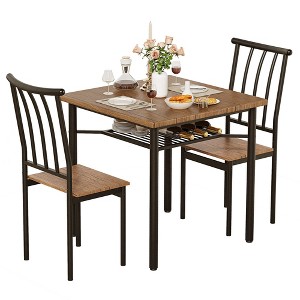 GustoWave 3 Piece Dining Table Set, with Wine Rack, for Small Space, Apartment